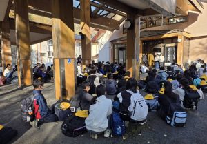 退館の会を行い、お世話になった旅館の方々へ感謝の気持ちを伝え、旅館を出発しました。