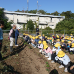 7体育着をしまう袋は55㎝を目安にお願いします。長さを55㎝以内にすることで廊下の床よりも短くなります。長いと床につき、底面が汚れたり、落し物になったりします。わかりやすいところに記名をしてください。